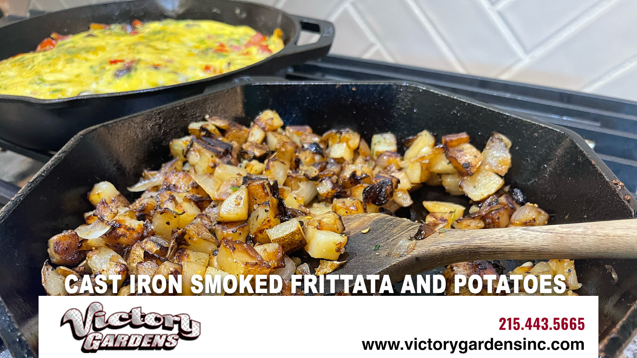 Smoked Frittata and Potatoes. Have you ever smoked eggs and potatoes? If you have not picked up on it yet, we love everything to do with your backyard including the food. In this post we celebrate breakfast with one of our favorites. This one has been captured from the fine folks at Traeger. Then enhanced with our own cast iron chunked potatoes.